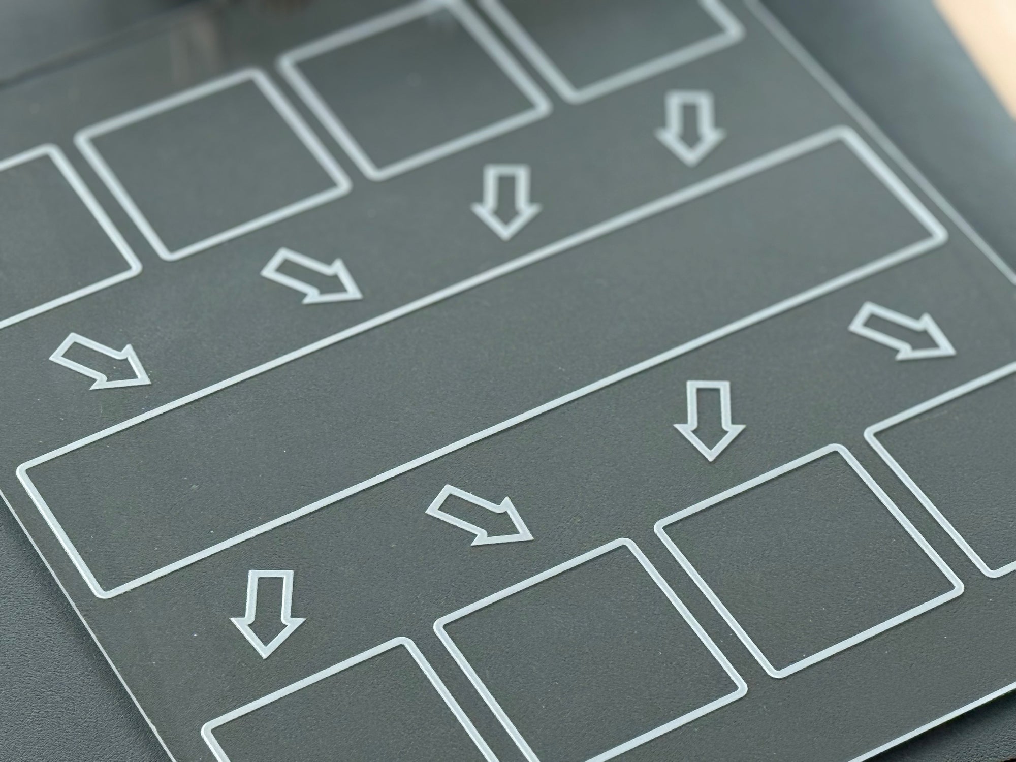 Use the side of the dry erase board that does NOT have the raised white engraved lines. So use your finger to feel which side has the raised white engraved lines and then use the opposite side which is the smooth side (not the side it's been engraved on).